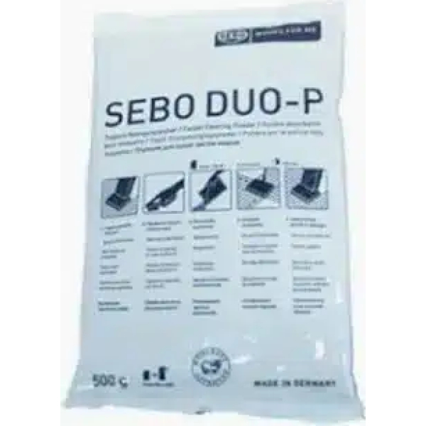 Maintain your carpets with ease using the Sebo DUO-P Carpet Cleaning Powder Refill Box. This box includes 5 sealed refill packages of the powerful DUO-P powder, allowing you to transfer it into your Sebo cleaning box effortlessly. Preserve moisture by tightly sealing unused packages.